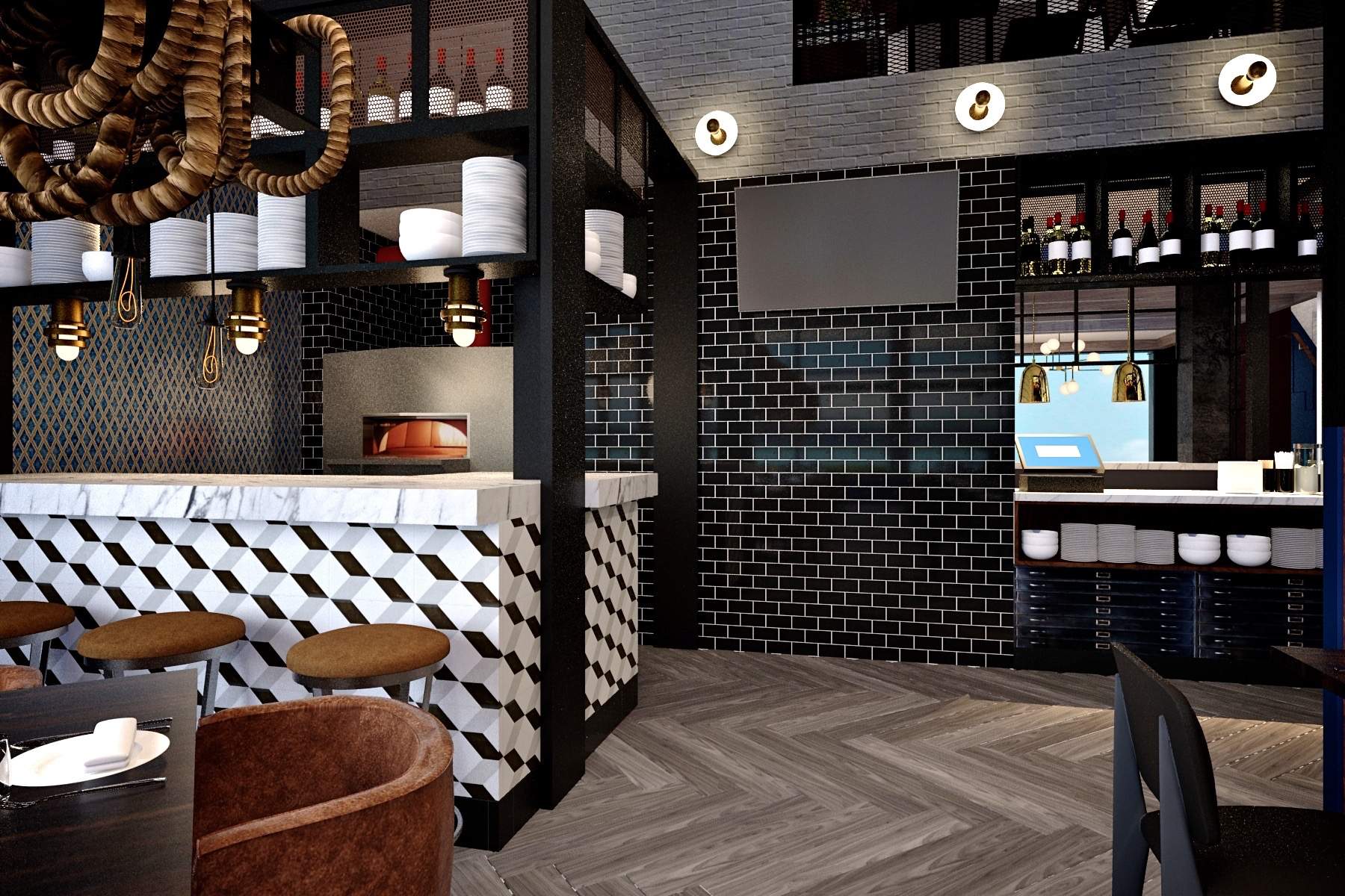 Full scope included concept development, 3D visualization, detailed drawings, construction documentation, hand sketches, and FF&E specification.