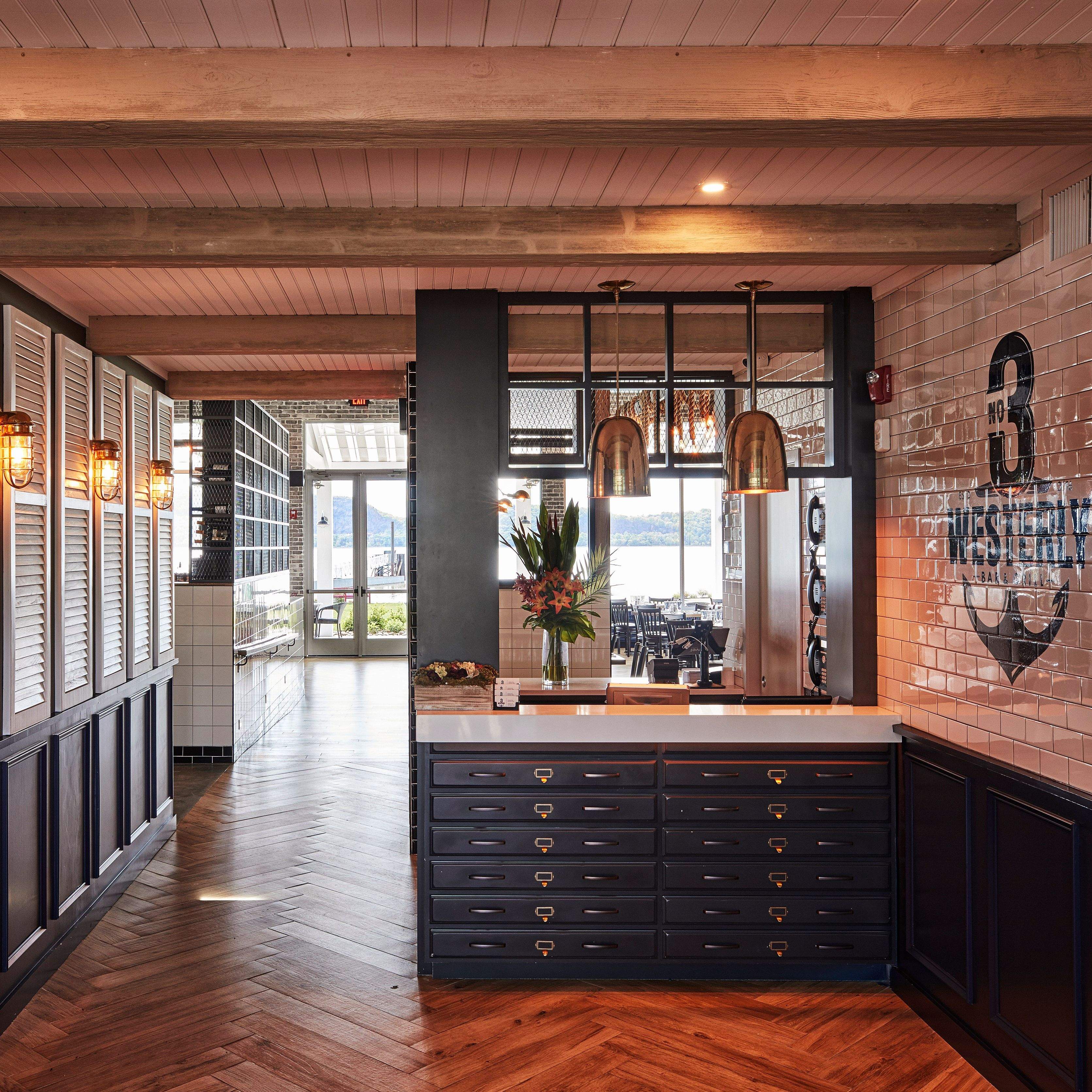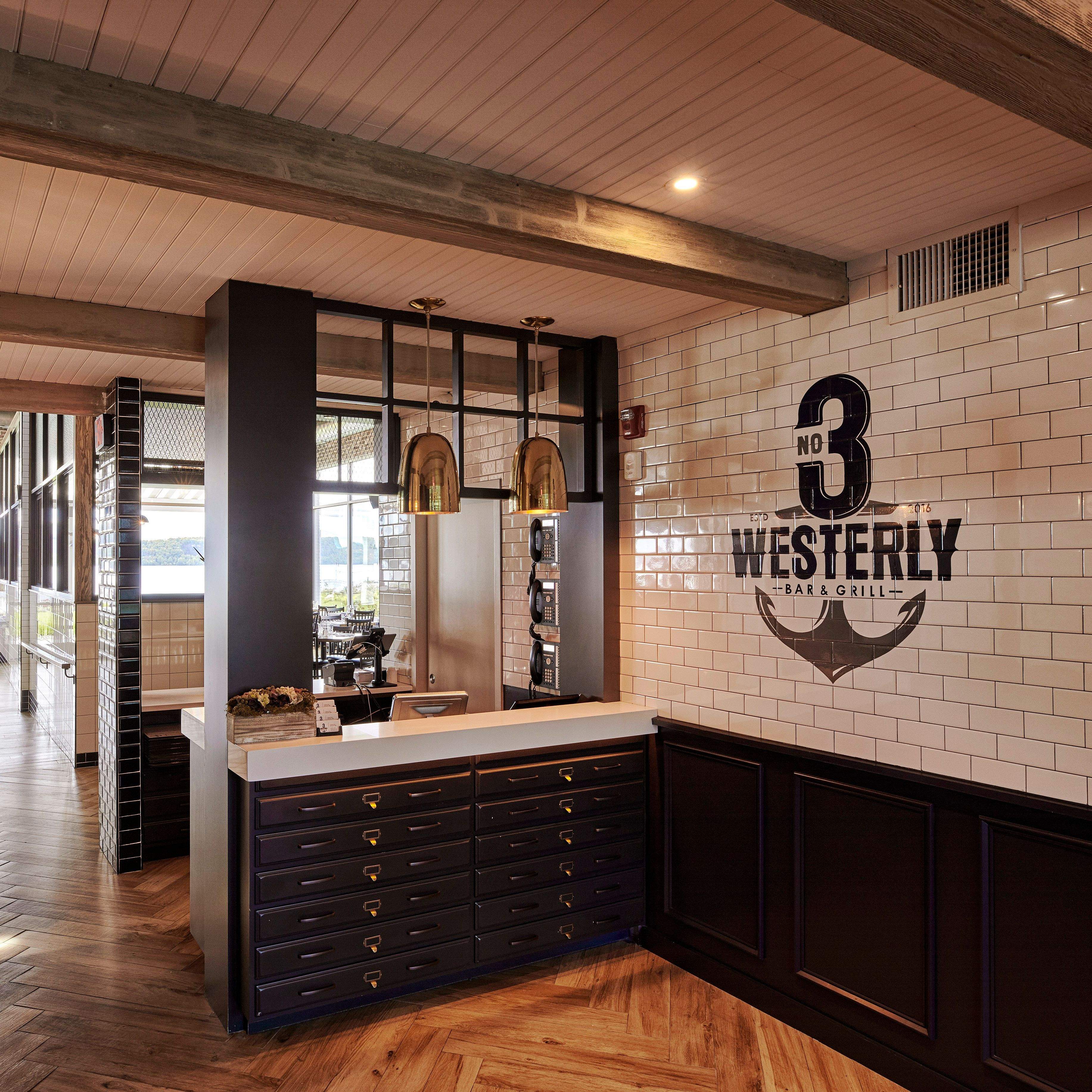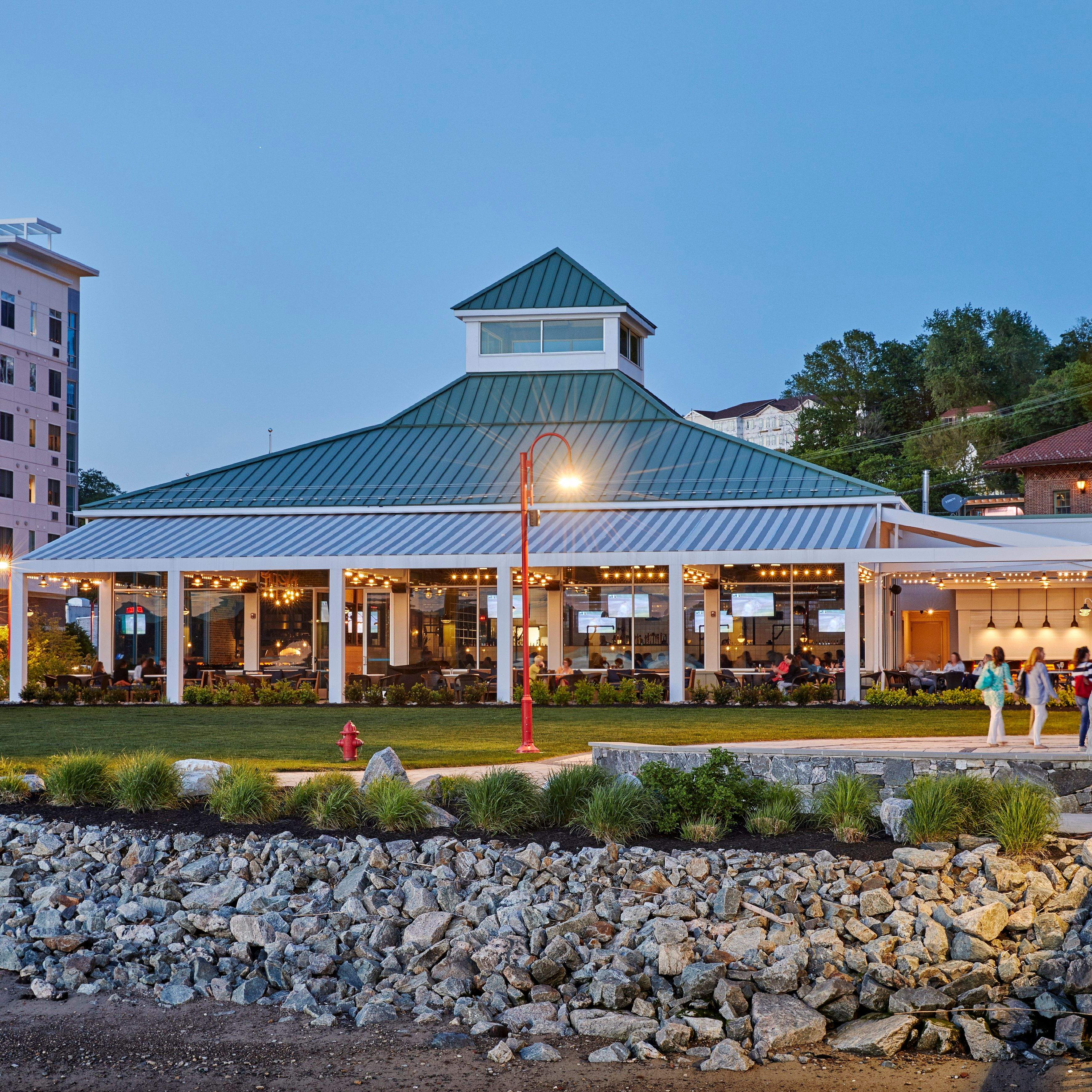 3 Westerly Bar & Grill occupies a unique lighthouse-style building, featuring indoor and outdoor dining with unobstructed views of the Hudson River.