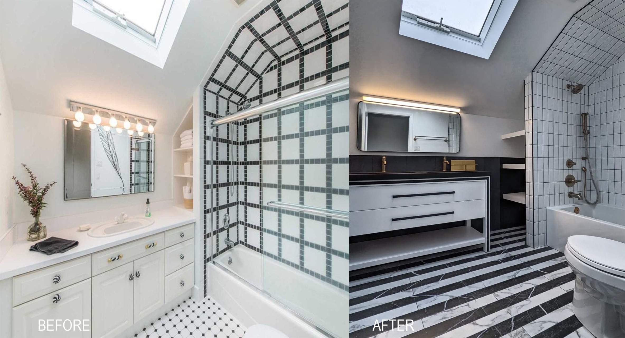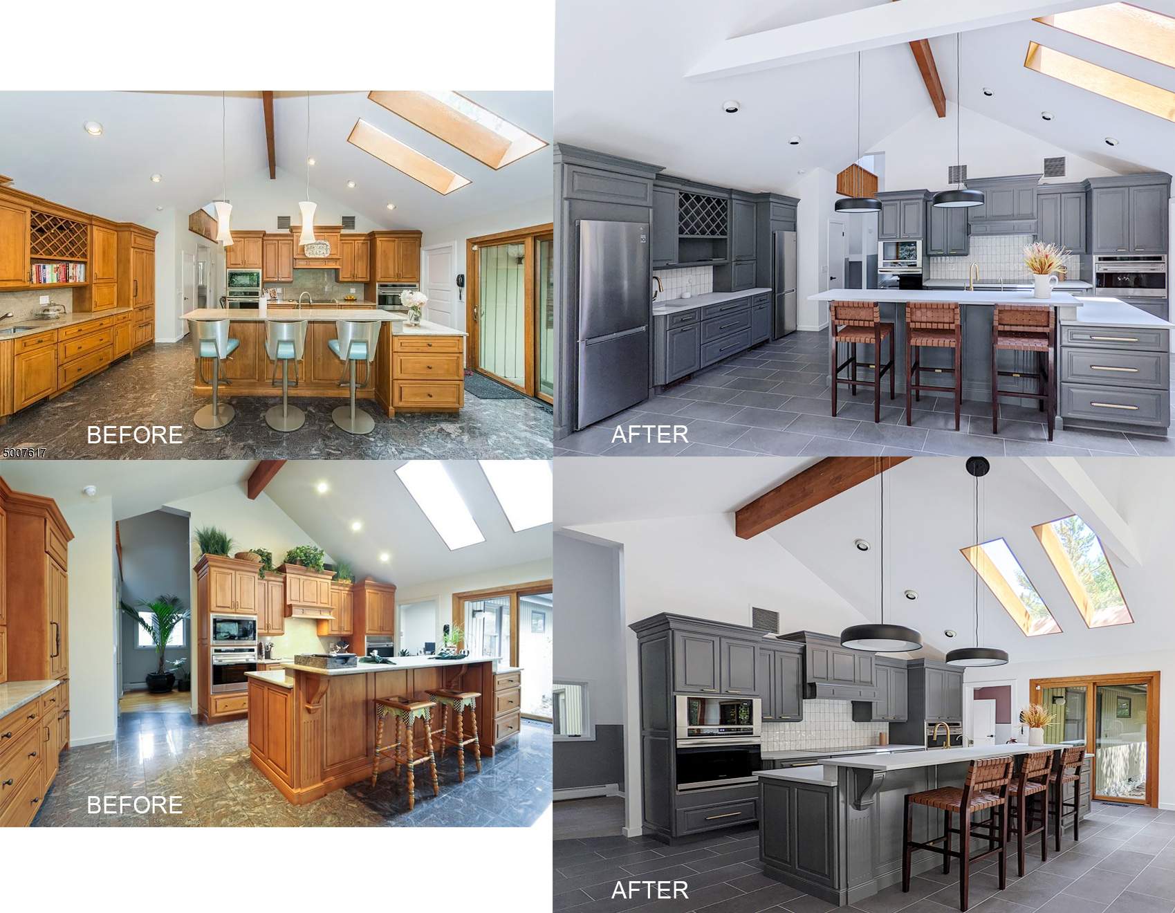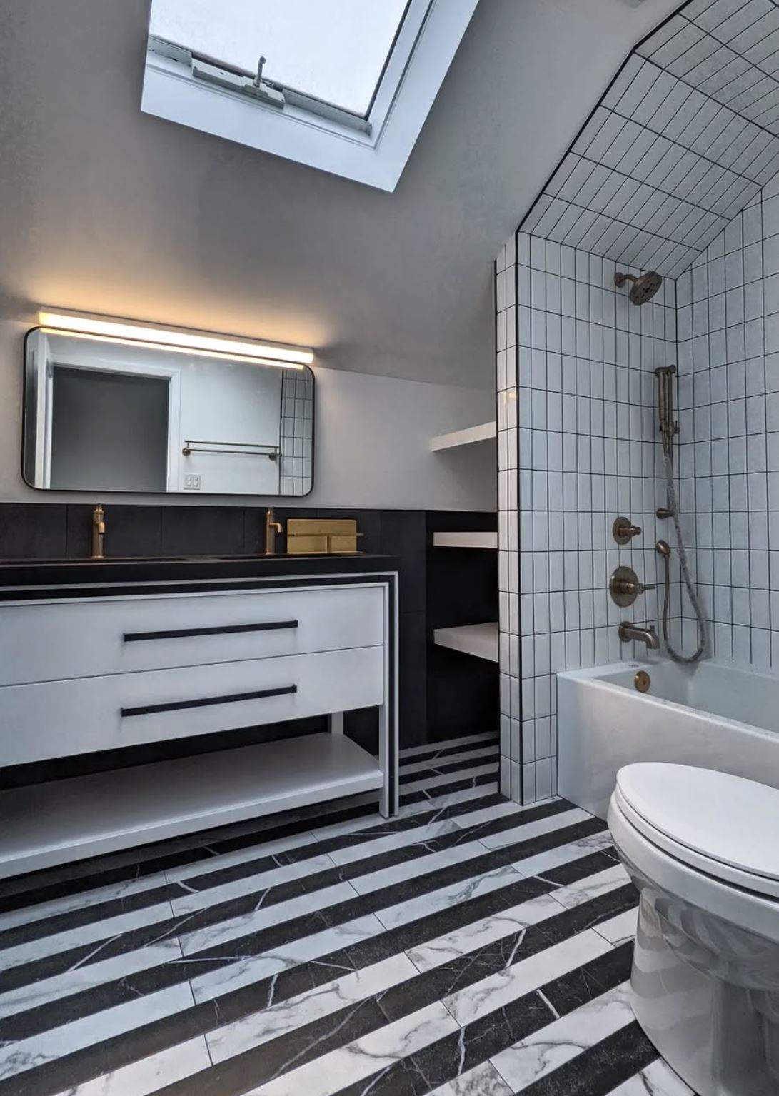 For this single-family home in suburban New Jersey, I delivered a modern, elevated interior transformation that balances clean lines, warm textures, and a refined contemporary aesthetic. All bathrooms were completely redesigned and rebuilt, introducing new layouts, materials, fixtures, and lighting to create calm, spa-inspired spaces. For the kitchen, the renovation was approached with both a tight budget and the severe cabinetry supply shortages during COVID, when new cabinet lead times often exceeded a year. To overcome these constraints, I strategically refinished the existing casework—selecting a sophisticated paint palette, upgrading all hardware with modern brass pulls, specifying new countertops, sinks, plumbing fixtures, and integrating new appliances. This method preserved the cabinetry structure while achieving a dramatically more current and cohesive look. As the interior designer, I oversaw concept development, material selection, construction administration, and final styling to bring the project’s vision to life despite challenging conditions.
