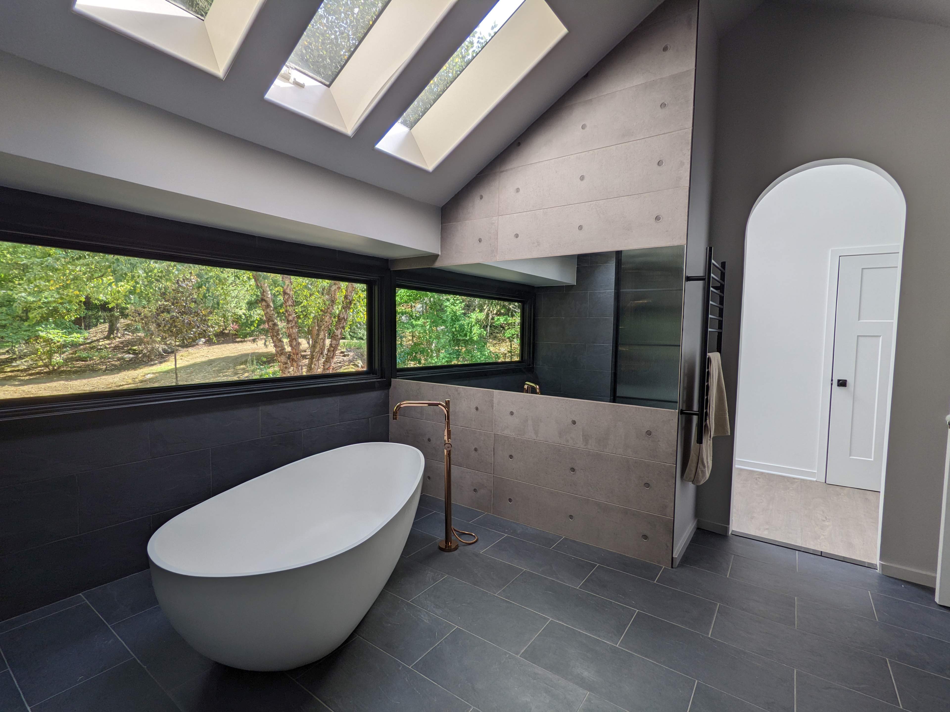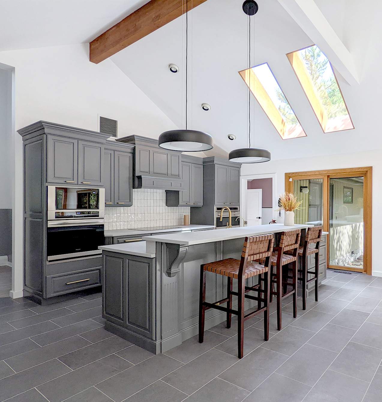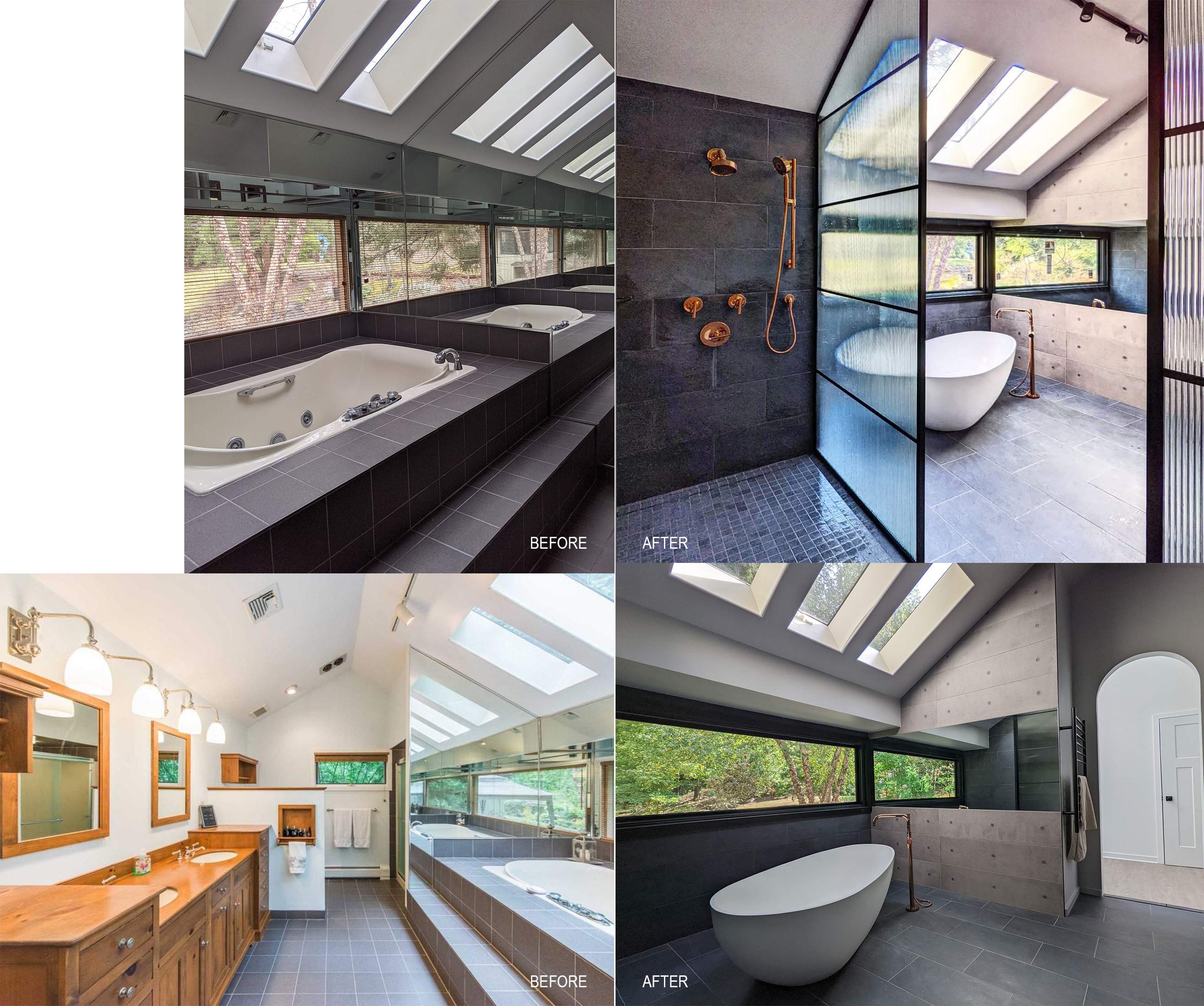 For this single-family home in suburban New Jersey, I delivered a modern, elevated interior transformation that balances clean lines, warm textures, and a refined contemporary aesthetic. All bathrooms were completely redesigned and rebuilt, introducing new layouts, materials, fixtures, and lighting to create calm, spa-inspired spaces. For the kitchen, the renovation was approached with both a tight budget and the severe cabinetry supply shortages during COVID, when new cabinet lead times often exceeded a year. To overcome these constraints, I strategically refinished the existing casework—selecting a sophisticated paint palette, upgrading all hardware with modern brass pulls, specifying new countertops, sinks, plumbing fixtures, and integrating new appliances. This method preserved the cabinetry structure while achieving a dramatically more current and cohesive look. As the interior designer, I oversaw concept development, material selection, construction administration, and final styling to bring the project’s vision to life despite challenging conditions.