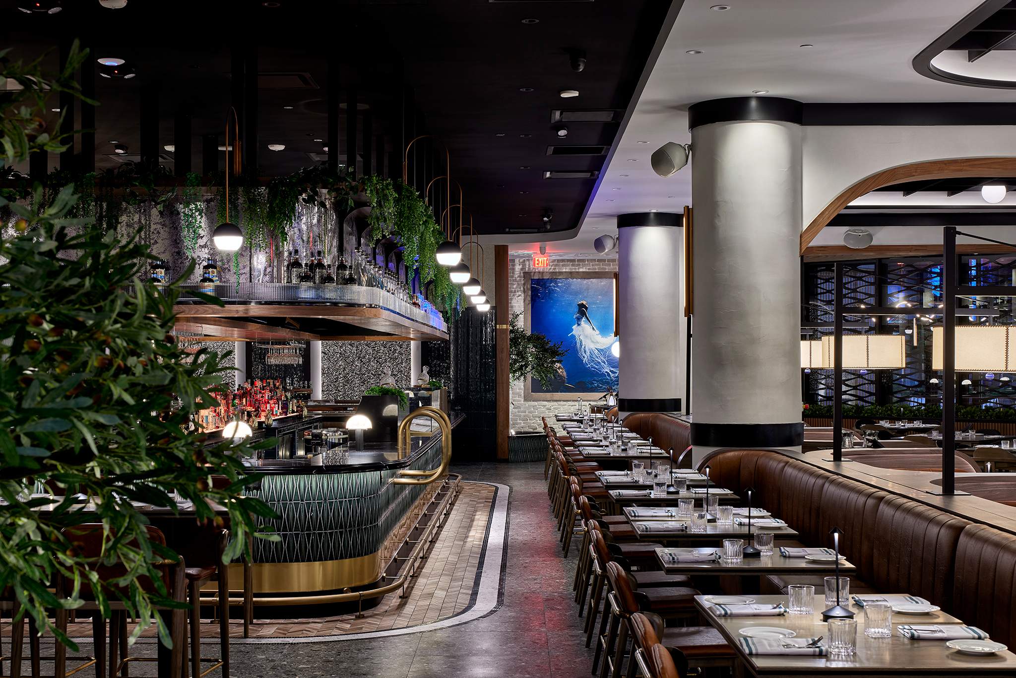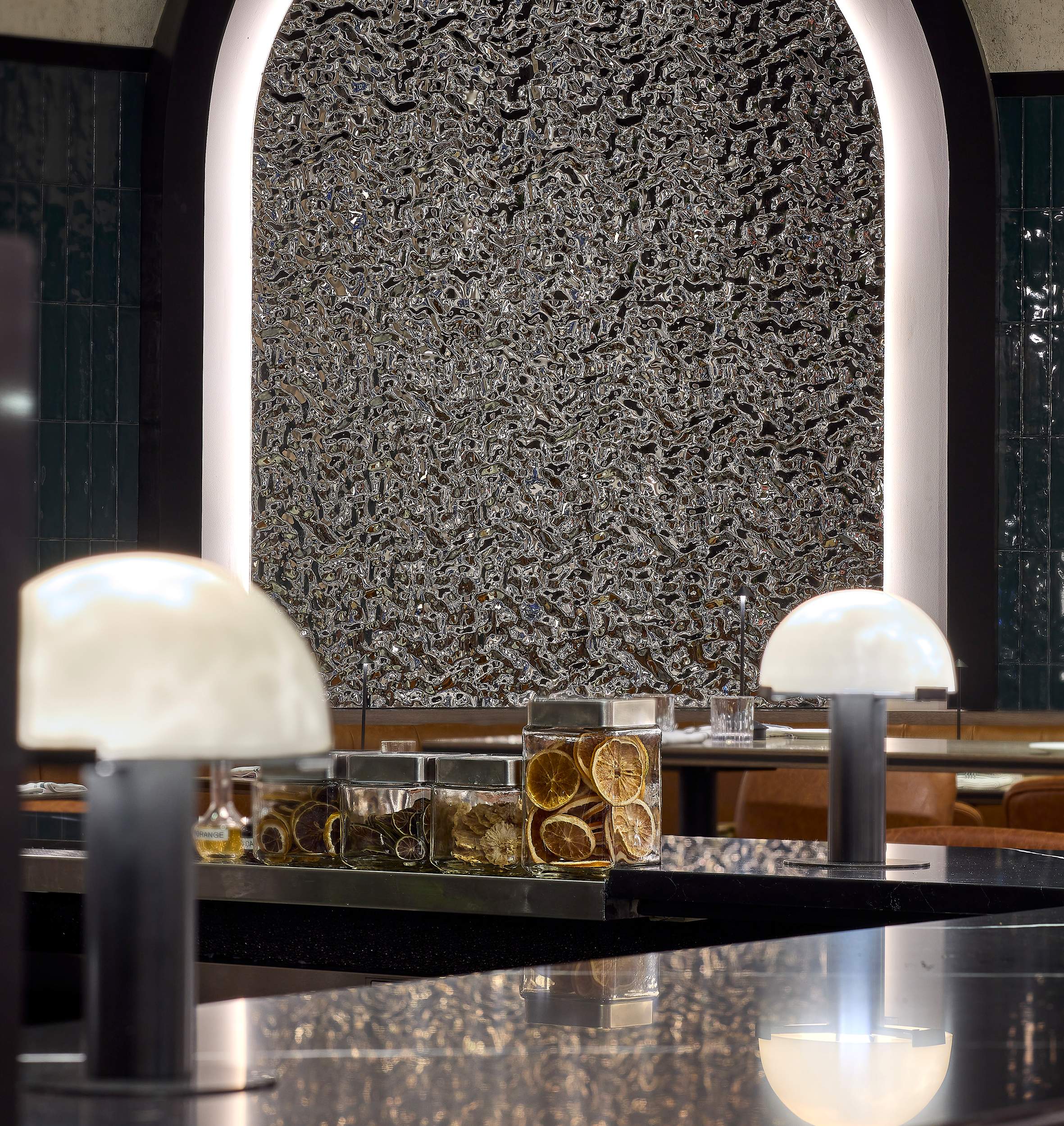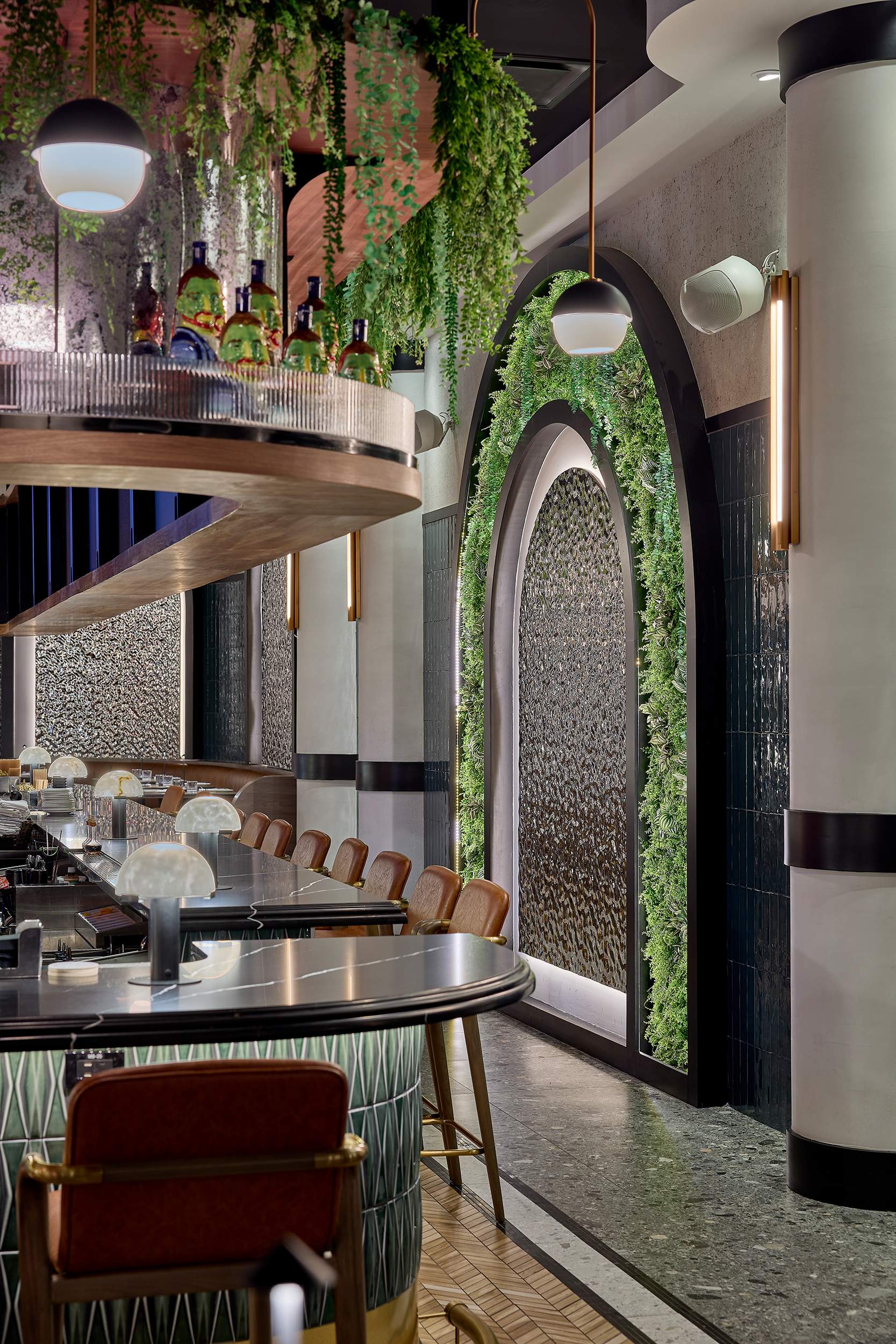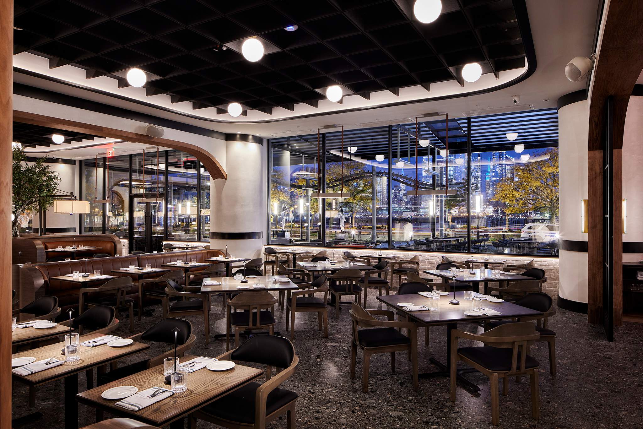 The Drift Bar & Restaurant in Weehawken, NJ blends mid-century modern style with a rich narrative inspired by the Hudson River, the historic Half Moon vessel, and the New York City skyline. Designed by Vanessa Deleon of VDA Designs, with collaborative design contributions from Sasi Kissane of Zilkz Studio, the project brings together two creative perspectives to shape a cohesive, story-driven space. During design development, Sasi worked with VDA to refine finish selections, elevate the color palette, design custom accent wall features, and enhance the overall styling—adding warmth, sophistication, and visual continuity throughout the interior.